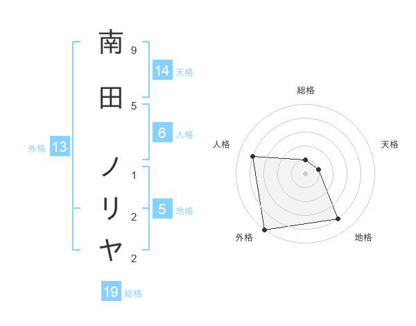 南田 ノリヤさんを姓名の画数から五運を鑑定