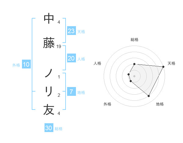 中藤 ノリ友さんの総格は30画の2点!
