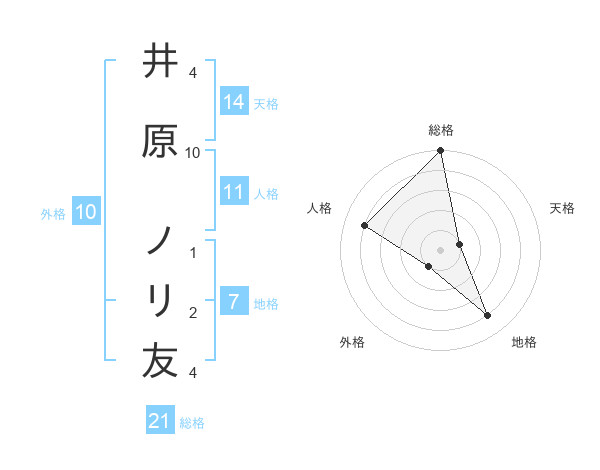 井原 ノリ友さんの総格は21画の5点