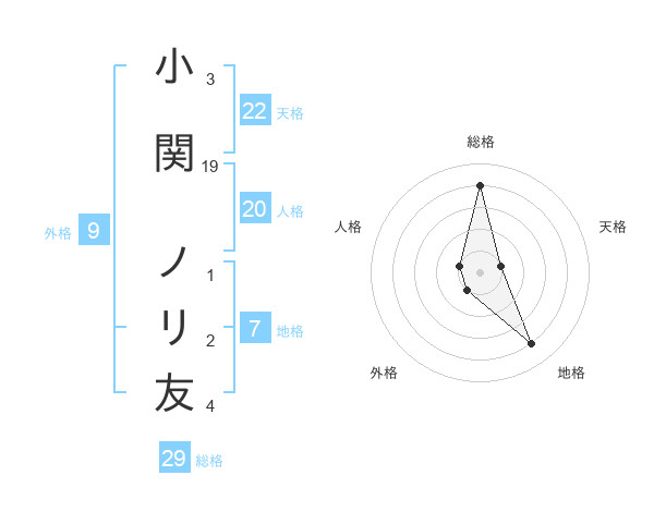 小関 ノリ友さんを姓名の画数から五運を鑑定