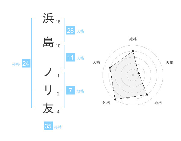 浜島 ノリ友さんを姓名の画数から五運を鑑定