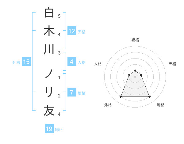 白木川 ノリ友さんを姓名の画数から五運を鑑定