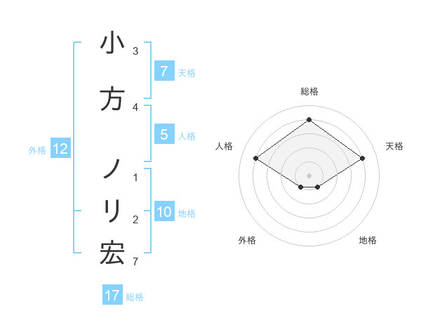 小方 ノリ宏さんを姓名の画数から五運を鑑定