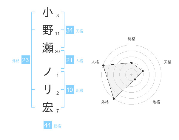 小野瀬 ノリ宏さんを姓名の画数から五運を鑑定