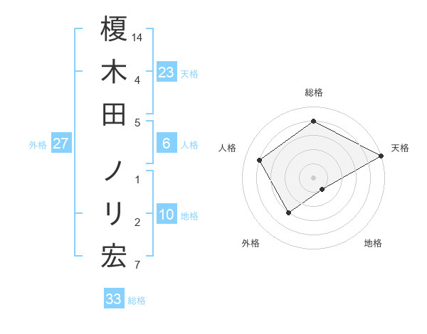榎木田 ノリ宏さんを姓名の画数から五運を鑑定