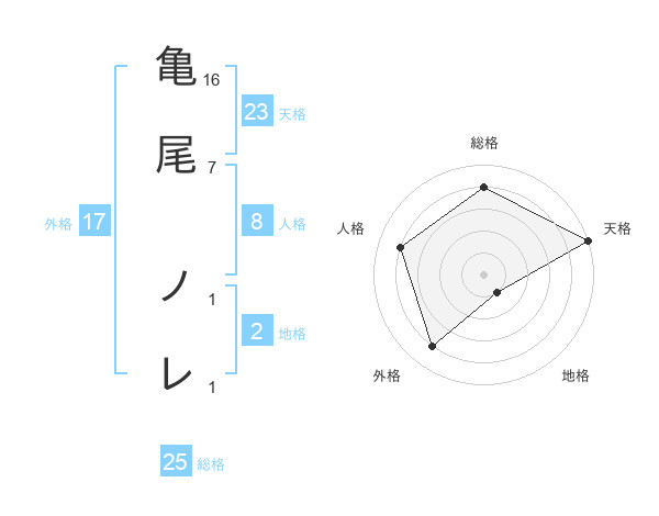 亀尾 ノレさんを姓名の画数から五運を鑑定
