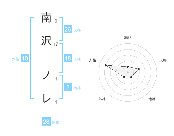 南沢 ノレさんを姓名の画数から五運を鑑定