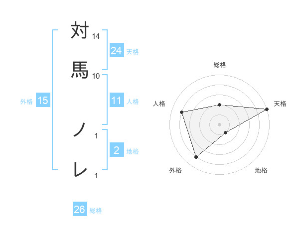 対馬 ノレさんの総格は26画の2点!