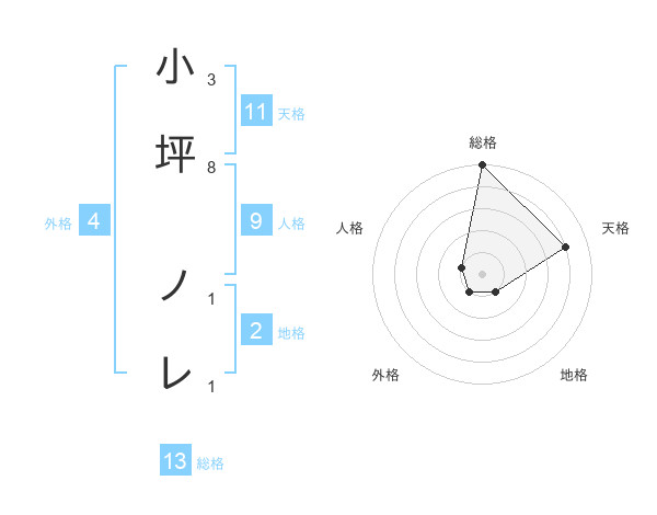 小坪 ノレさんの総格は13画の5点!