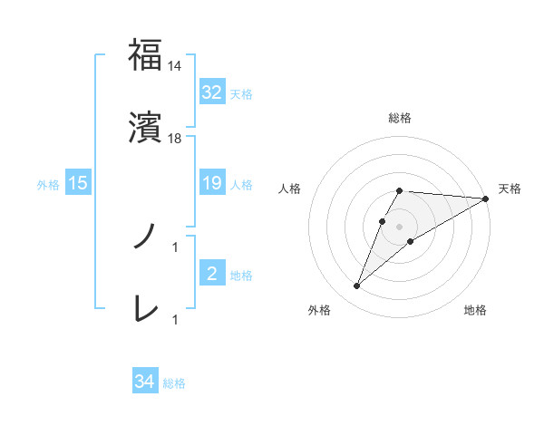 福濱 ノレさんの天格は32画の5点!