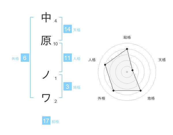 中原 ノワさんの総格は17画の4点!