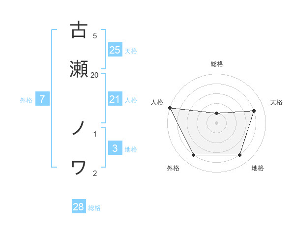 古瀬 ノワさんを姓名の画数から五運を鑑定