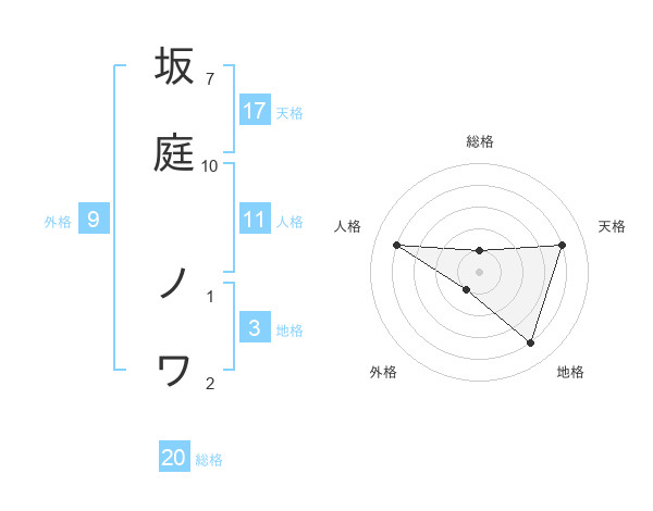 坂庭 ノワさんの総格は20画の1点!