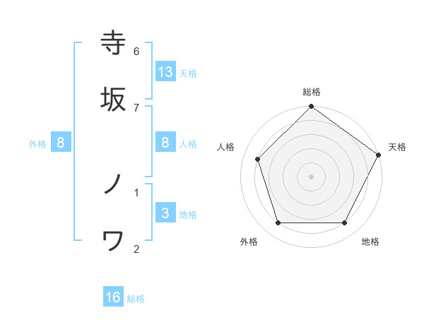 寺坂 ノワさんの天格は13画の5点!
