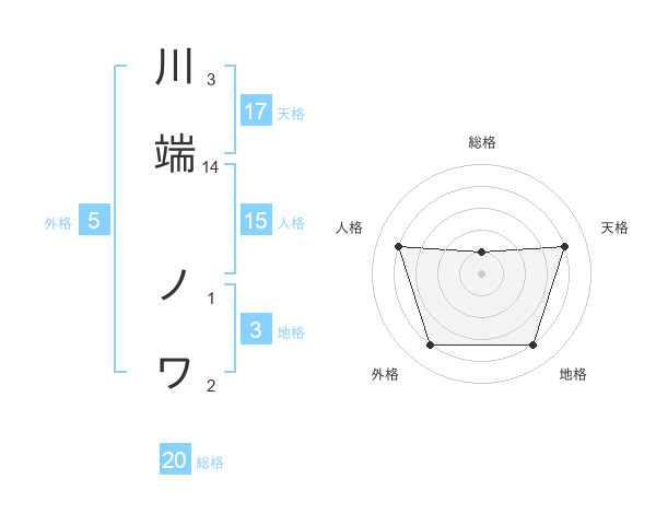 川端 ノワさんの天格は17画の4点!