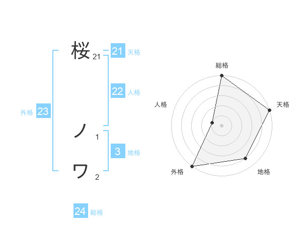 桜 ノワさんの総格は24画の5点!
