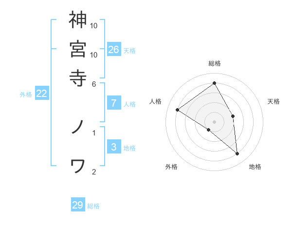 神宮寺 ノワさんを姓名の画数から五運を鑑定