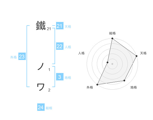 鐵 ノワさんの天格は21画の5点!