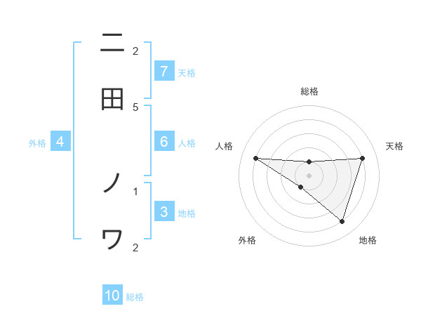 二田 ノワさんの天格は7画の4点!