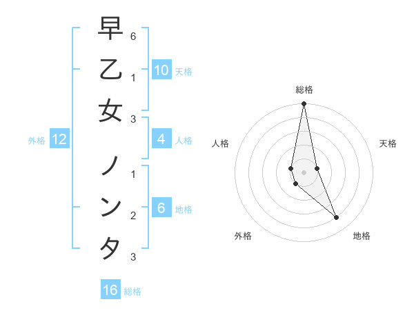 早乙女 ノンタさんを姓名の画数から五運を鑑定