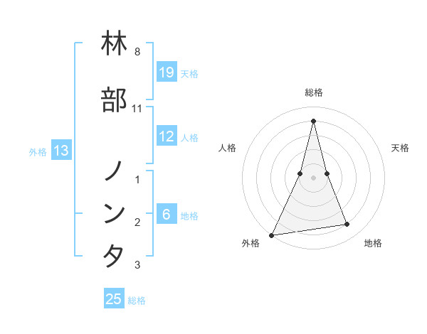 林部 ノンタさんの外格は13画の5点!