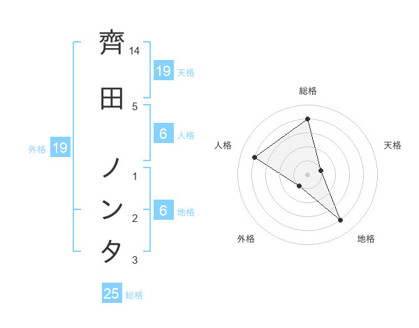 齊田 ノンタさんを姓名の画数から五運を鑑定