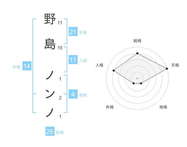 野島 ノンノさんを姓名の画数から五運を鑑定