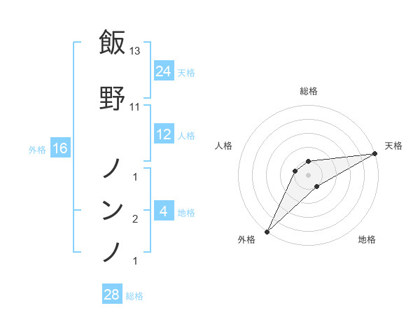 飯野 ノンノさんの天格は24画の5点!