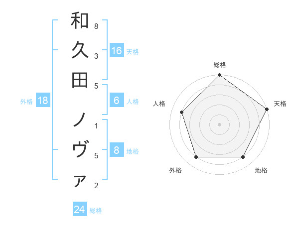 和久田 ノヴァさんを姓名の画数から五運を鑑定