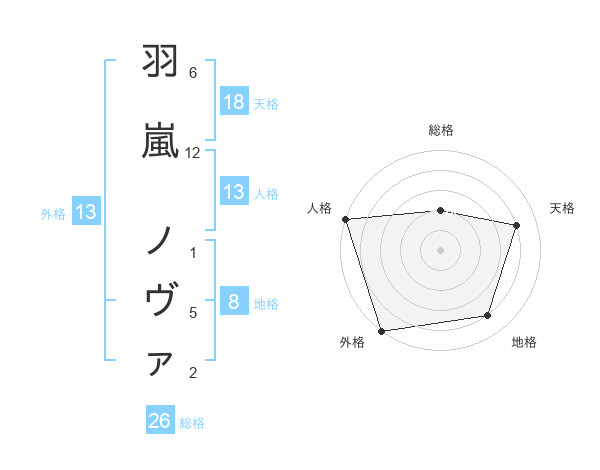 羽嵐 ノヴァさんを姓名の画数から五運を鑑定
