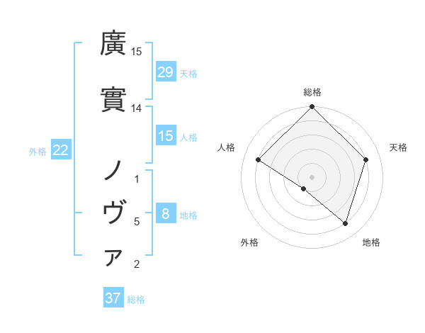廣實 ノヴァさんを姓名の画数から五運を鑑定