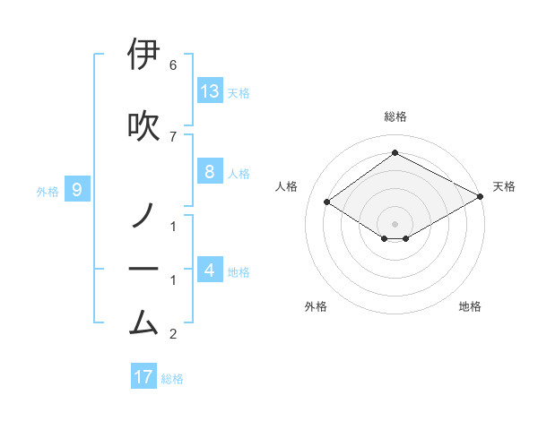 伊吹 ノームさんを姓名の画数から五運を鑑定