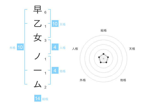 早乙女 ノームさんの総格は14画の1点!