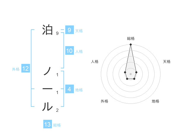 泊 ノールさんの総格は13画の5点
