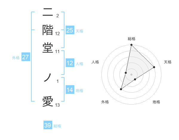 二階堂 ノ愛さんを姓名の画数から五運を鑑定