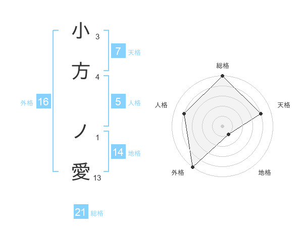小方 ノ愛さんの総格は21画の5点
