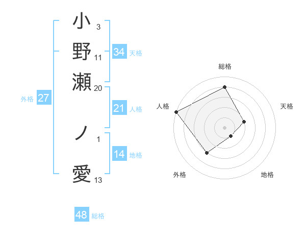小野瀬 ノ愛さんを姓名の画数から五運を鑑定
