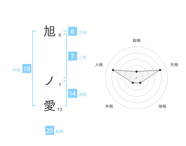 旭 ノ愛さんを姓名の画数から五運を鑑定