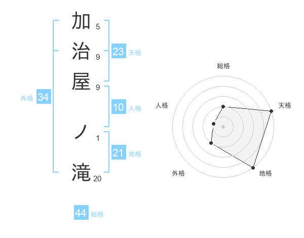 加治屋 ノ滝さんの天格は23画の5点