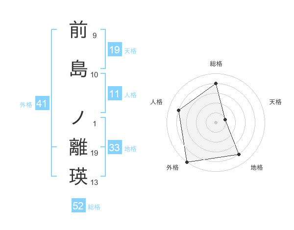 前島 ノ離瑛さんの総格は52画の4点!
