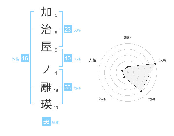 加治屋 ノ離瑛さんの天格は23画の5点!