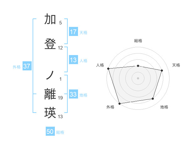 加登 ノ離瑛さんを姓名の画数から五運を鑑定