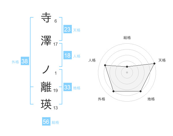 寺澤 ノ離瑛さんの外格は38画の4点!
