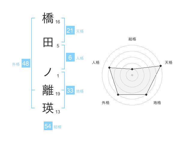 橋田 ノ離瑛さんの地格は33画の4点!