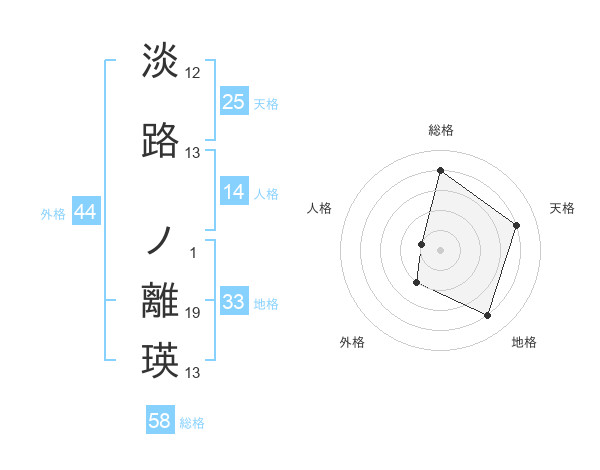 淡路 ノ離瑛さんを姓名の画数から五運を鑑定