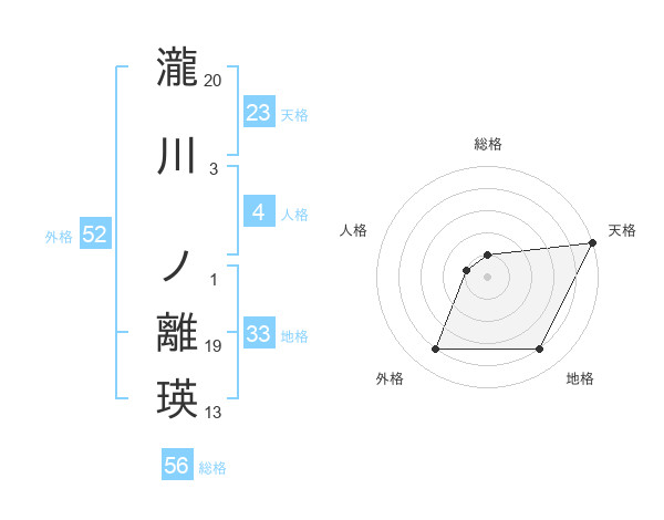瀧川 ノ離瑛さんの外格は52画の4点!
