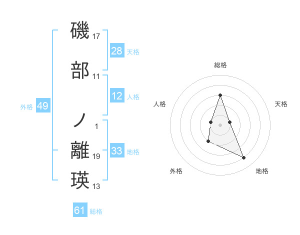 磯部 ノ離瑛さんを姓名の画数から五運を鑑定