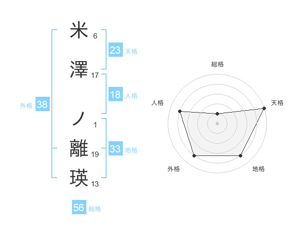 米澤 ノ離瑛さんの総格は56画の1点!