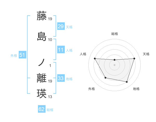 藤島 ノ離瑛さんを姓名の画数から五運を鑑定
