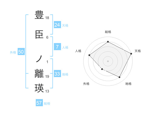 豊臣 ノ離瑛さんの外格は50画の2点!